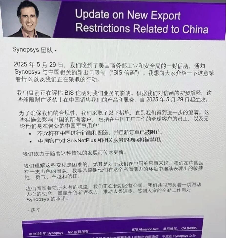 有读者会思考:为何美国没有对小米搞一些小动作呢?美国当然小动作不断!在小米发布「玄戒 O1」后的5月29日,美国商务部工业和安全局就向美国三大EDA巨头之一的Synopsys(新思科技),发布了向中国销售EDA (电子设计自动化)工具的出口限制。